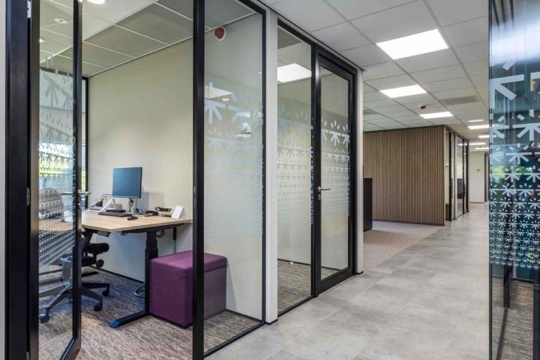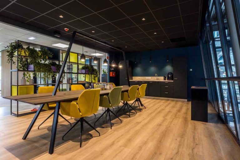 Gepla BV heeft mogen meedenken in de ontwerp- en calculatiefase en heeft vervolgens ook een groot aandeel in de uitvoering voor haar rekening genomen. Denk aan de montage van MS-wanden, glazen wanden, het monteren van systeemplafonds, het wrappen van de vliesgevel, het leveren/monteren van maatwerk-meubels, houten wandbekleding en schilderwerk. Aanvullend hebben we ook nog nieuwe vloerbedekking gelegd en zonwering gemonteerd.